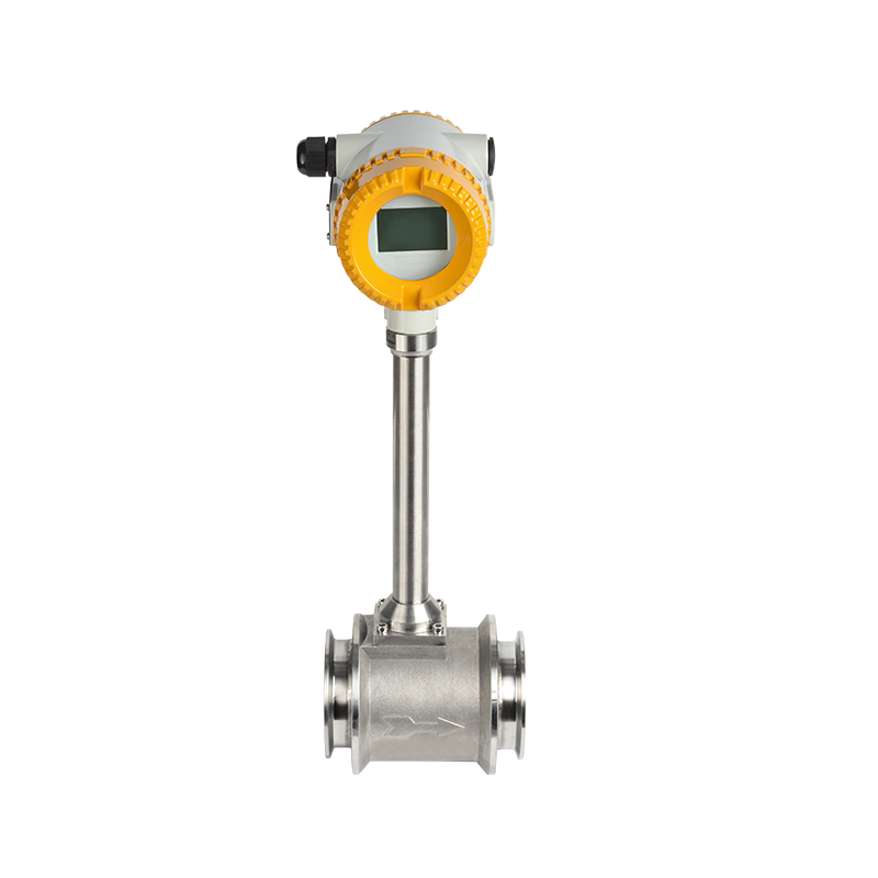 The LUGB series clamp connected vortex flowmeter overcomes the drawbacks of high cost, inconvenient operation, and low efficiency that require a uniform distribution of bolt holes on the connecting plate and the use of bolts and nuts to fix the connecting plate on the pipeline. Instead, it adopts a connecting plate with a right angle trapezoidal cross-section and a right angle trapezoidal bevel on the inner side. When in use, the clamp is used to fasten the connecting plate on the pipeline, which is low-cost, time-saving, and labor-saving. Clamp type flowmeters are mainly used in high complexity work environments such as oil fields.