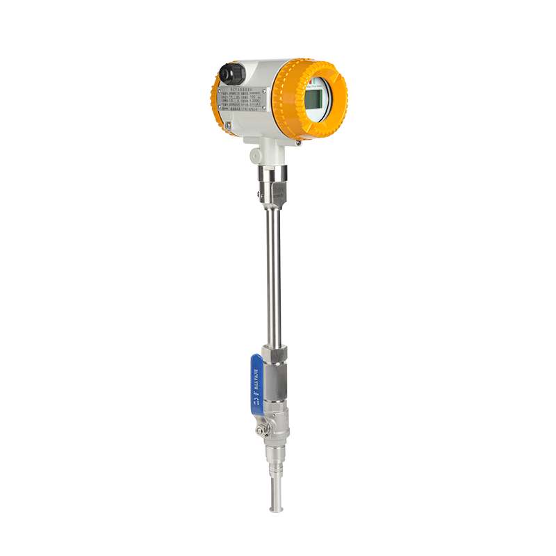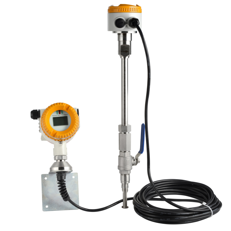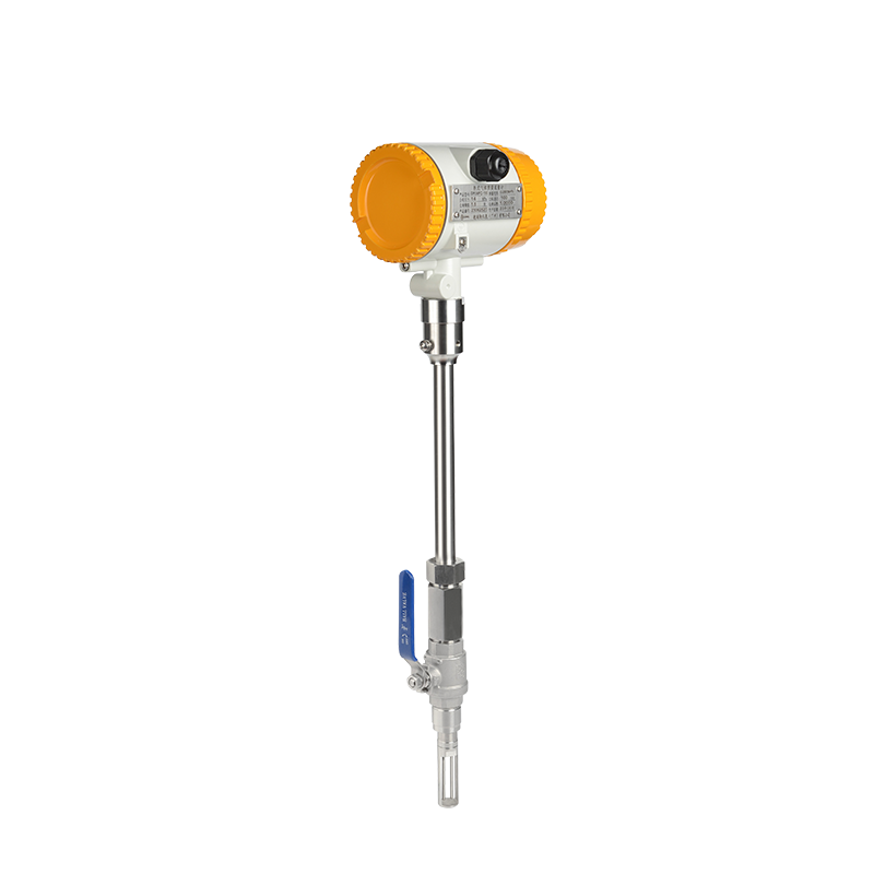 DPLTMF係列插入式熱式氣體質量流量計是利用熱擴散原理測量氣體流量的儀表。傳感器由兩個基準級熱電阻(RTD)組成。相對於DPLTMF係列管段式熱式氣體質量流量計,DPLTMF係列插入式熱式氣體質量流量計傳感器可在線安裝、在線維護。安裝過程是首先在管道外壁上焊接帶有外螺紋的底座,在底座上安裝1寸不鏽鋼球閥,而後用專用工具將管道打直徑為22mm的孔,打孔完畢後卸下專用工具,最後將傳感器安裝在閥門上並將傳感器插入到管內中心(傳感器的插入位置出廠時已確定)。