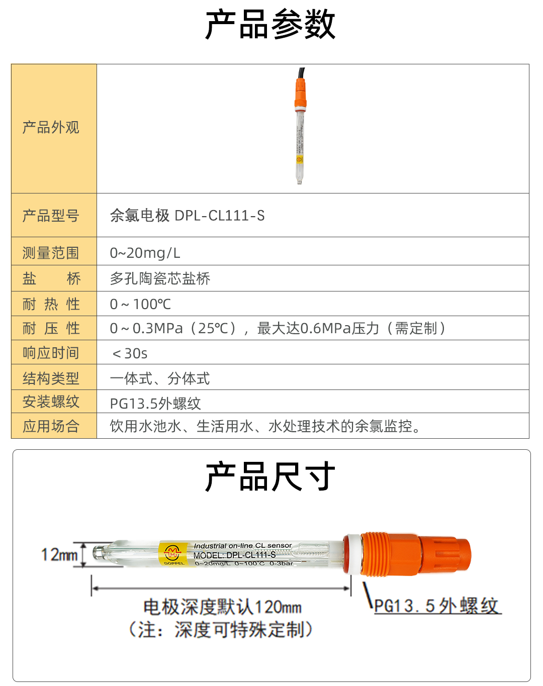 德浦勒pH餘氯電極 DPL-CL111-S