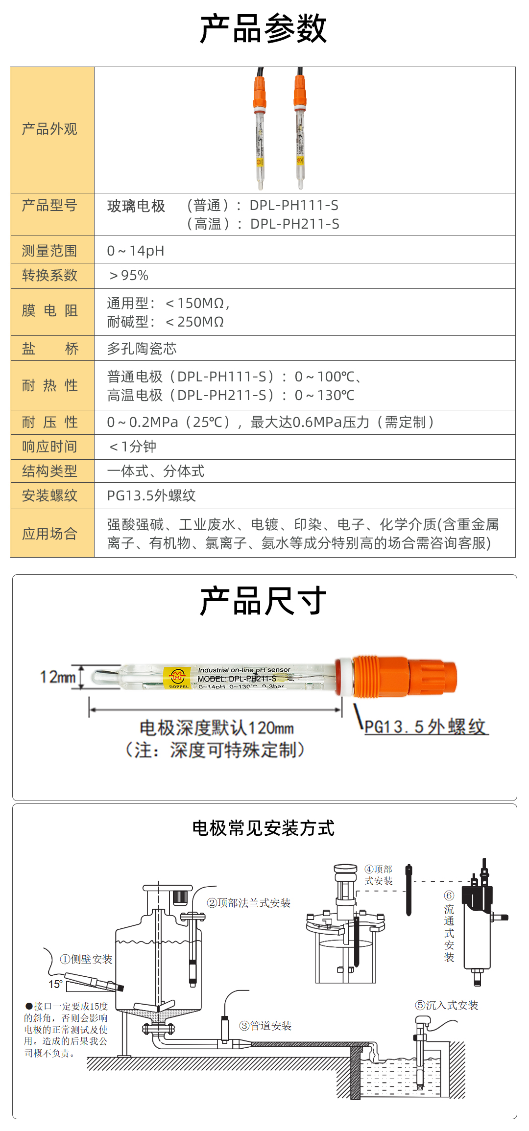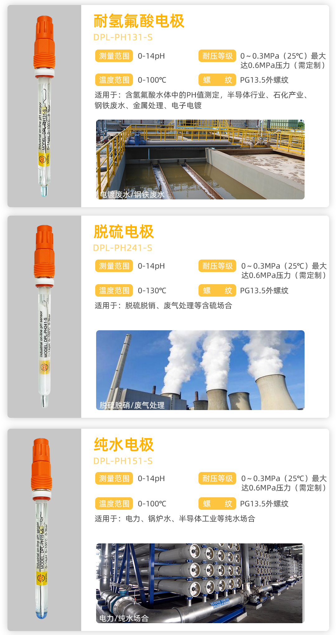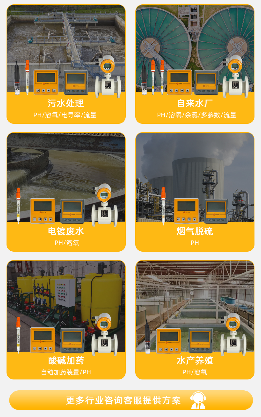應用場合:強酸強堿、工業廢水、電鍍、印染、電子、化學介質(含重金屬離子、有機物、氯離子、氨水等成分特別高的場合需谘詢客服)。
