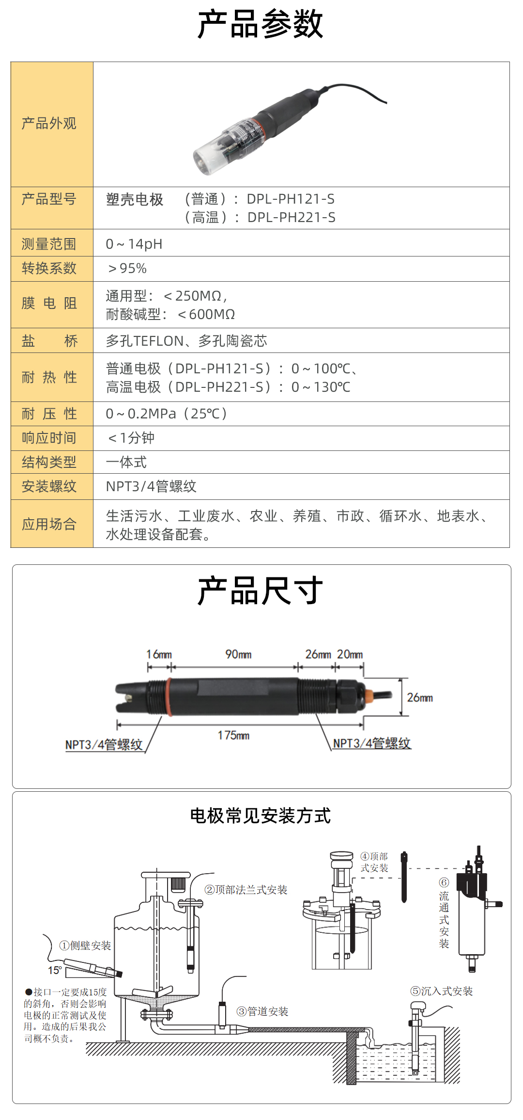 德浦勒pH塑殼電極(普通DPL-PH121-S / (高溫DPL-PH221-S