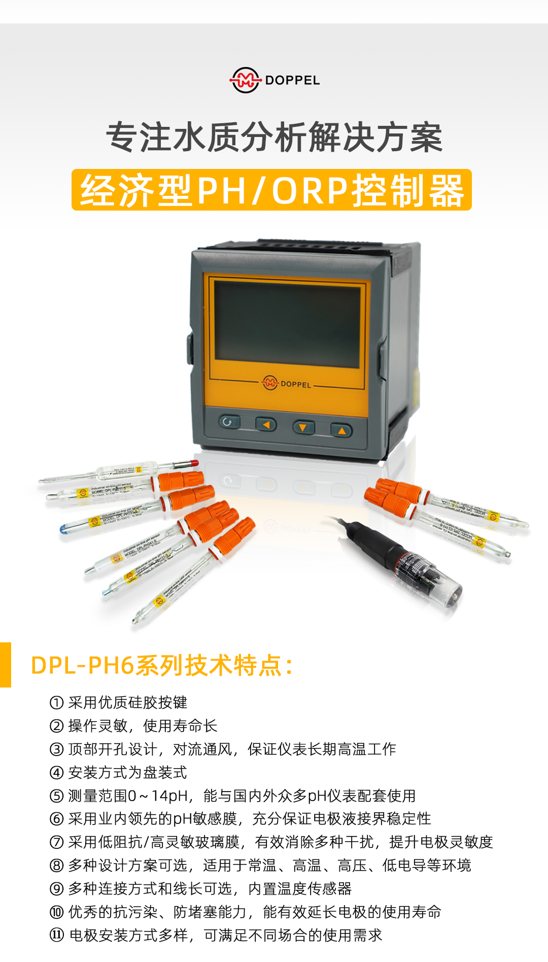 ⑤ 測量範圍0~14pH,能與國內外眾多pH儀表配套使用